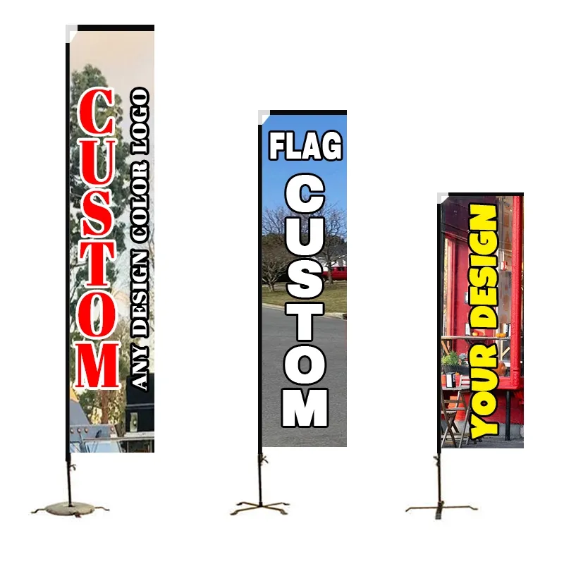 Правоъгълно плажно знаме е един вид знаме с правоъгълна форма Flat top flag, известно още като блоково знаме, ръбово знаме или телескопично знаме. Правоъгълният флаг има по-голяма площ за печат от флаговете с пера или флаговете със сълза, прави дисплея на флага красив по всяко време, идеално подходящ за силно въздействащи промоции както на закрито, така и на открито. Earth Display е професионален производител на правоъгълни плажни флагове с високо качество и разумна цена. Добре дошли да се свържете с нас.